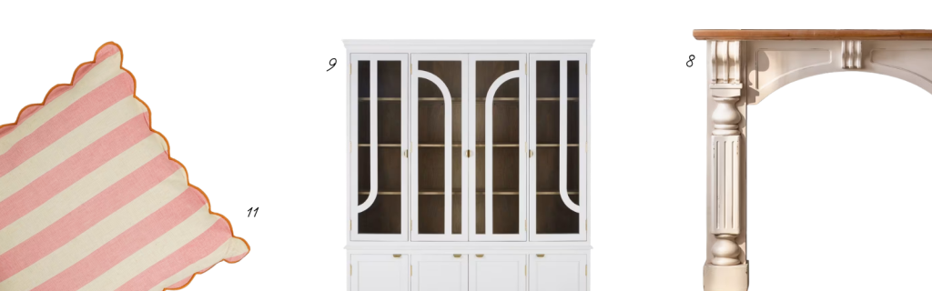 Et on finit avec un accessoire de décoration qui saura amener sa petite touche de fraicheur : ce coussin rayé rose et blanc cassé et à la bordure festonnée (11).