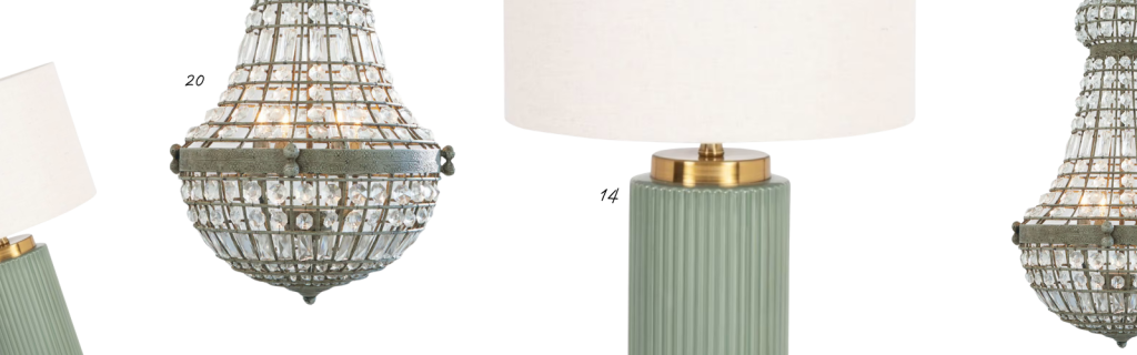J’ai déniché pour vous cette lampe (14) avec pied en céramique strié vert sauge et doré et abat-jour beige crème. Son allure parle d’elle même.