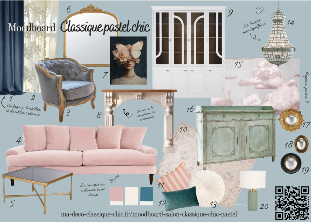 Moodboard : salon classique chic pastel
